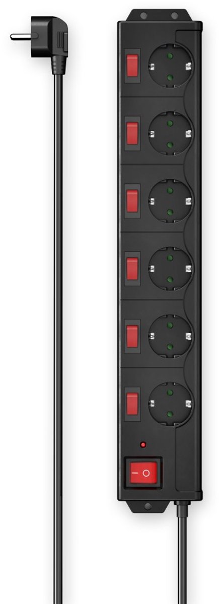 6-voudige stekkerdoos met 90° stopcontacten en 6 schakelaars